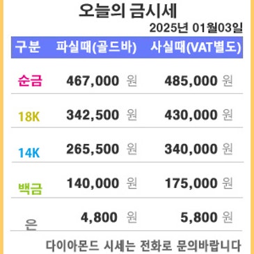 ★오늘의 금시세 2025년 02월07일★ 24k,18k,14k,은수저 남양,향남,비봉,서신,제부,조암,팔탄,마도,송산,새솔동,안산, 최고가매입 최저가판매 하는곳 제일금은거래소!